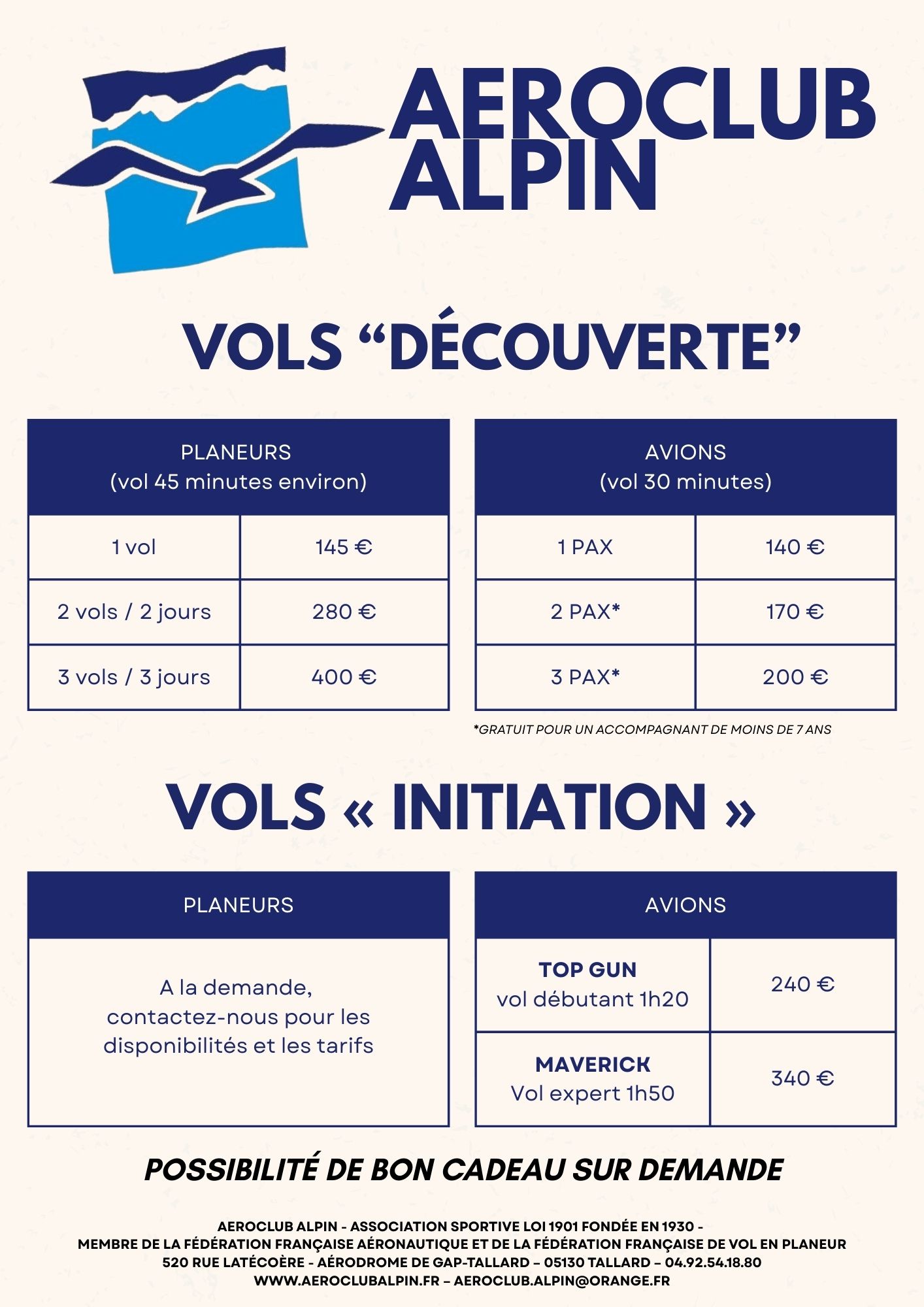ÉCOLE DE PILOTAGE & VOLS DECOUVERTE – Aérodrome de Gap Tallard – Hautes-Alpes